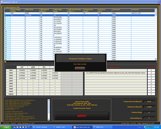 This test system was developed to test Sensor box inside the temperature chamber. It aims to control and monitor the 3rd Party instrument chamber by sending commands thru serial cable and acquire the Controller Area Network (CAN) Signals transmitted by the 6 (six) DUTs which is the sensor box. Controller, SMU and CAN Interfaces were integrated in a compact PXI Industrial chassis thus reduce the space occupied in the Test Laboratory; a great advantage in a small area. Data Graph Viewer in the system is useful in the analysis of the previous save data. And some features which are real time graph viewer, data logging in excel format, test profile editor and other tools are also included.